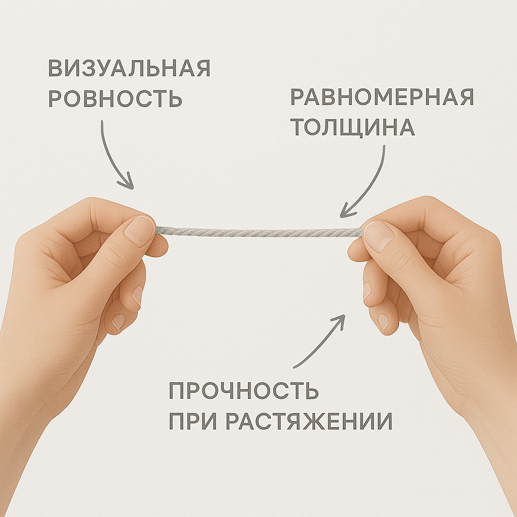 В бытовой практике микнес можно оценить визуально - нить выглядит ровной, без утолщений и просветов. При растяжении петля сохраняет форму, не расслаивается и не рвется.