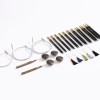 В наборе: Спицы съемные 10 пар (3мм, 3,25мм, 3,5мм, 3,75мм, 4мм, 4,5мм, 5мм, 5,5мм, 6мм и 8мм, длина 13см) - эбеновое дерево, тросик поворотный 3шт (60см, 80см, 100см) - нержавеющая сталь с нейлоновым покрытием, заглушки 4шт - дерево, кабельный ключик 2шт - дерево/сталь, маркеры для вязания 5шт, футляр - шелк кхади.